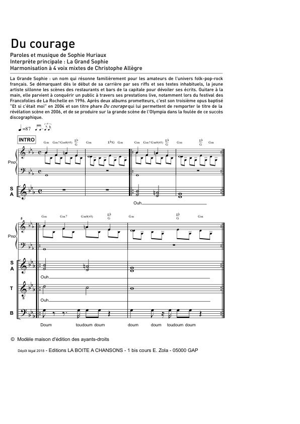 La Grande Sophie : un nom qui résonne familièrement pour les amateurs de l'univers folk-pop-rock français. Se démarquant dès le début de sa carrière par ses riffs et ses textes inhabituels, la jeune artiste sillonne les scènes des restaurants et bars de la capitale pour dévoiler ses écrits. Guitare à la main, elle parvient à conquérir un public à travers ses prestations live, notamment lors du festival des Francofolies de La Rochelle en 1996. Après deux albums prometteurs, c'est son troisième opus baptisé "Et si c'était moi" en 2004 et son titre phare Du courage qui lui permettent de remporter le titre de la révélation scène en 2006, et de se produire sur la grande scène de l'Olympia dans la foulée de ce succès discographique.